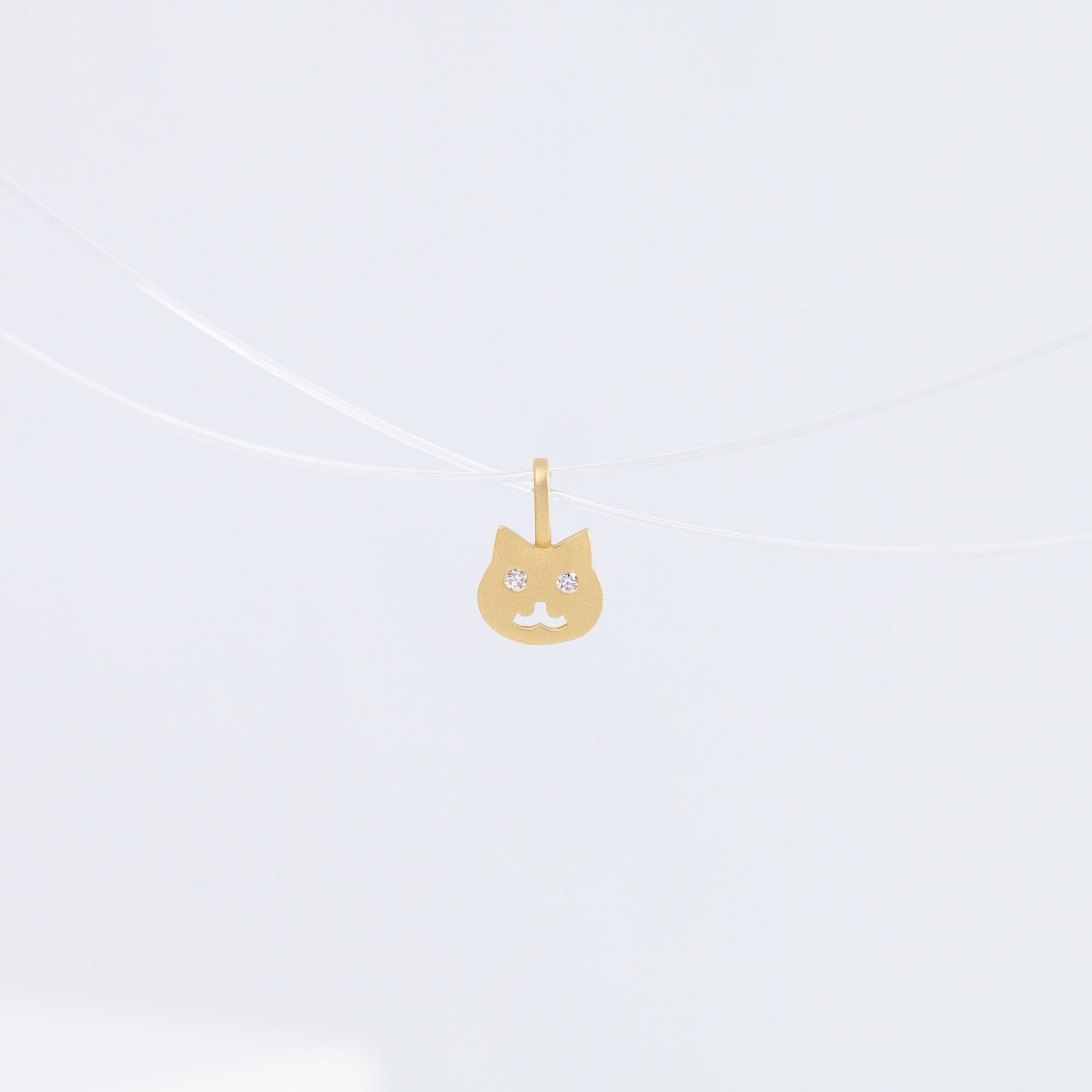 18K yellow gold necklace with white diamonds as the eyes. Simple and dainty everyday necklace with the most adorable face that will make your day.
