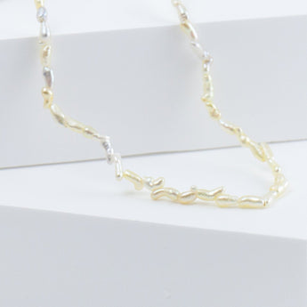Mizuki Shinkai of Shinkai crafts his bespoke designs around the beautifully unique quirks of each natural pearl. Each item is handmade in a Japanese style — giving each piece a warm, delicate quality. With a simple, elegant, and masterfully subtle-yet-bold technique, Mizuki hopes to resonate with those who do not want to be trapped in traditional style, but instead want to enjoy jewelry that reflects their own feelings.