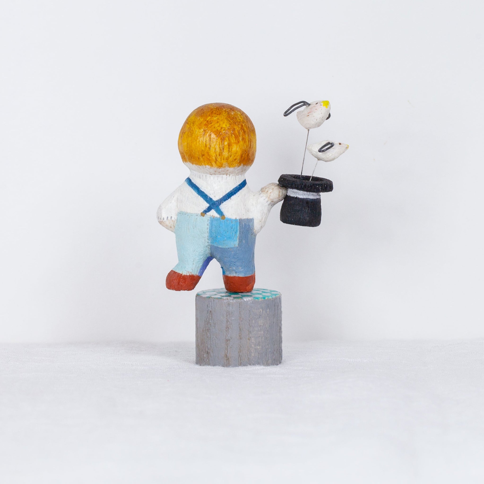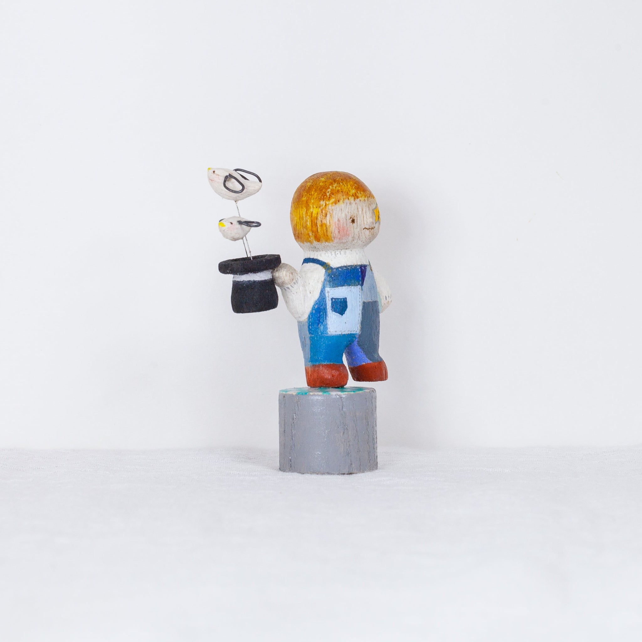 Akaiboushinoki’s carvings often feature tiny characters who always look just a little bit concerned. Each one is hand carved, hand painted, and completely one-of-a-kind. But it is not just the carvings that make Akaiboushinoki’s work special. The playful titles and little after stories, illustrated scenes that come with each piece, feel like quiet whispers from the figurines themselves and have become a signature part of Akaiboushinoki’s world.