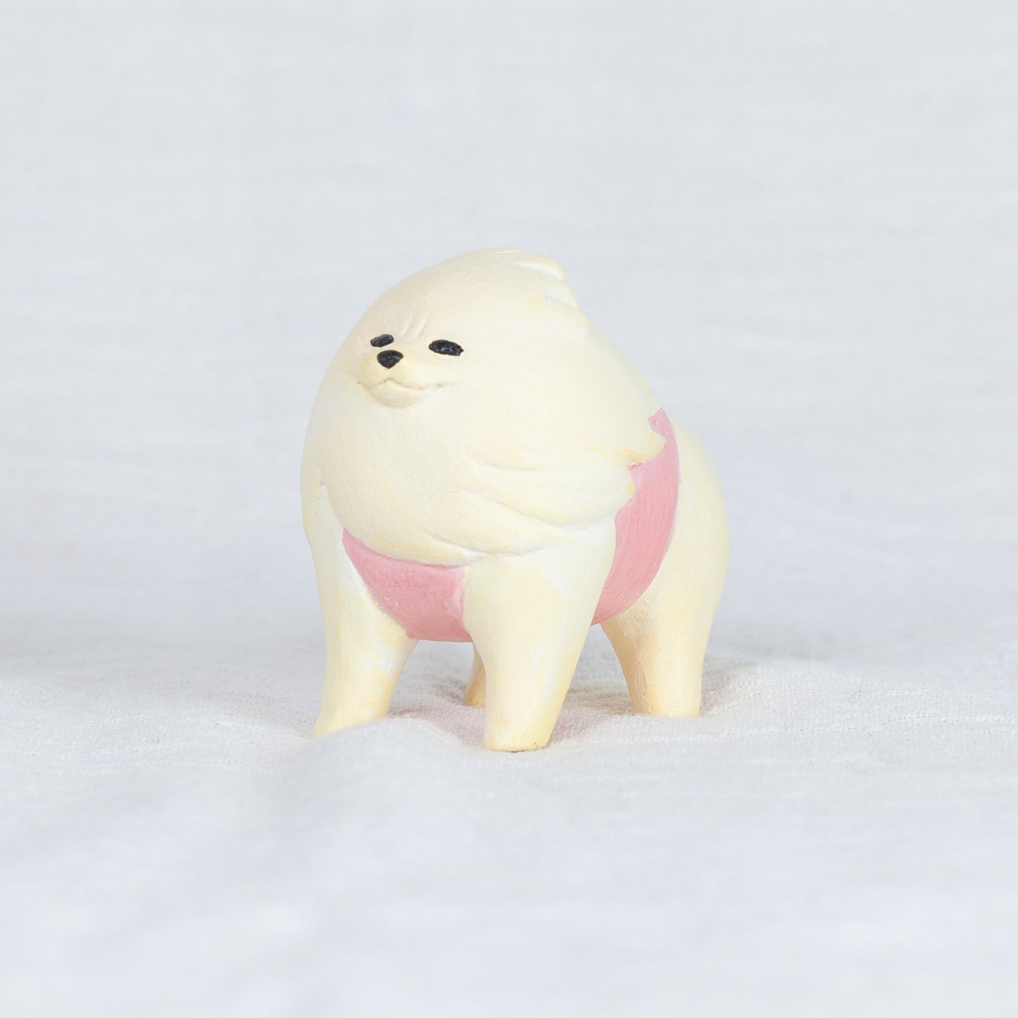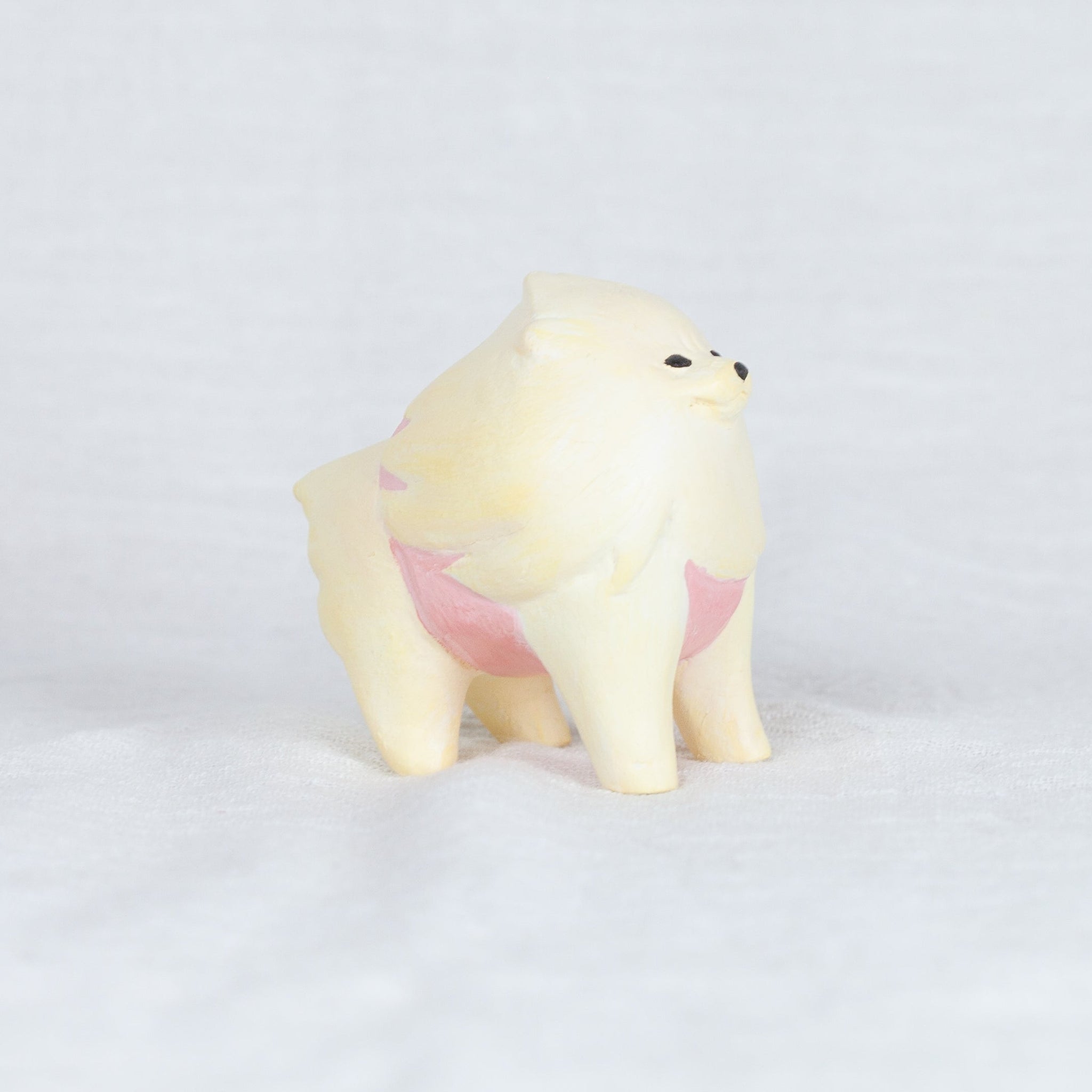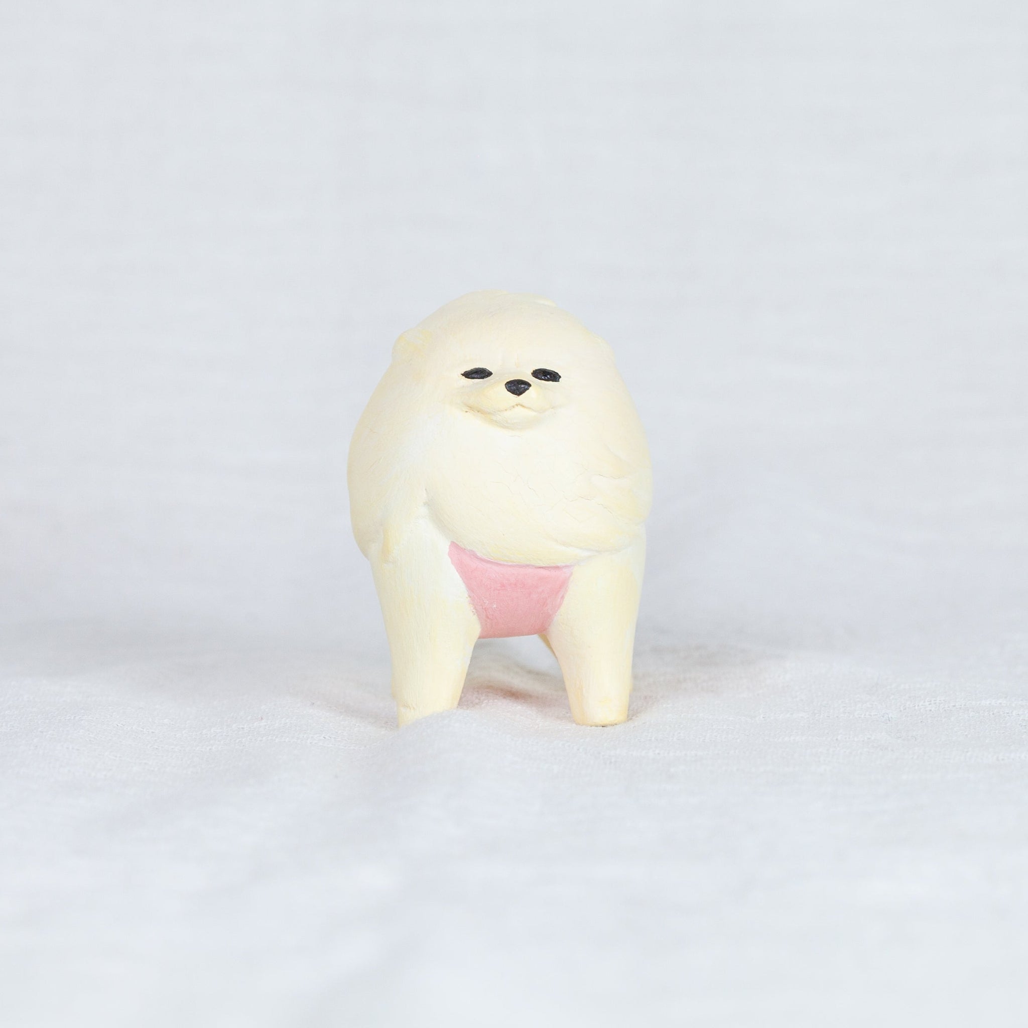 montomi is a well-known capsule toy designer who creates little animal characters that often appear round, puffy, and full of charm. She began creating in 2016, and some of her best loved capsule toy series include Pomeranians That Face Strong Wind and Shibas Who Do Not Want to Go Home. While montomi’s work is often found inside capsule toy machines, this exhibition, Little Friends Across the Sea, focuses mainly on pieces that are handmade by montomi herself. Each work is individually crafted, and hand painted with care and love in Tokyo.