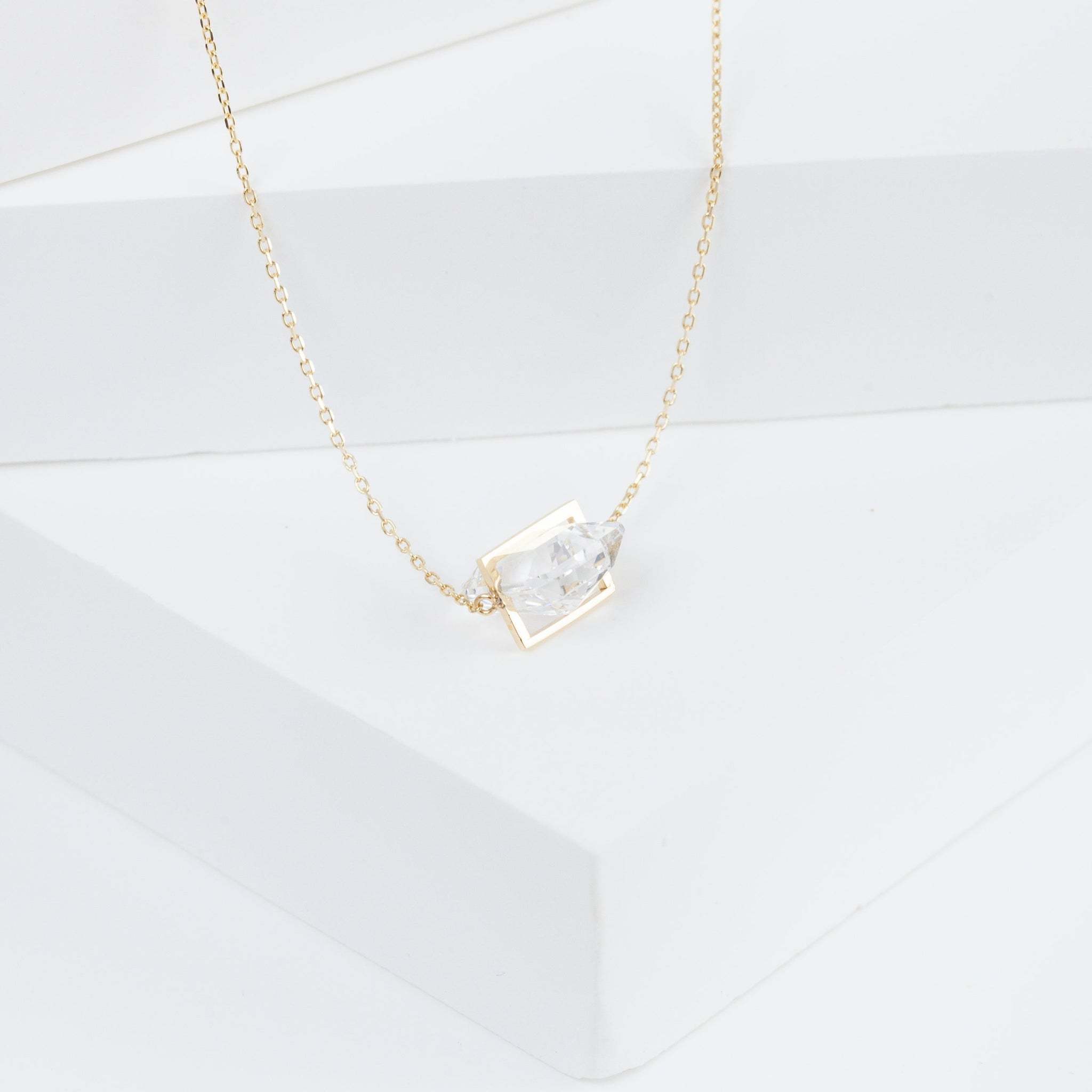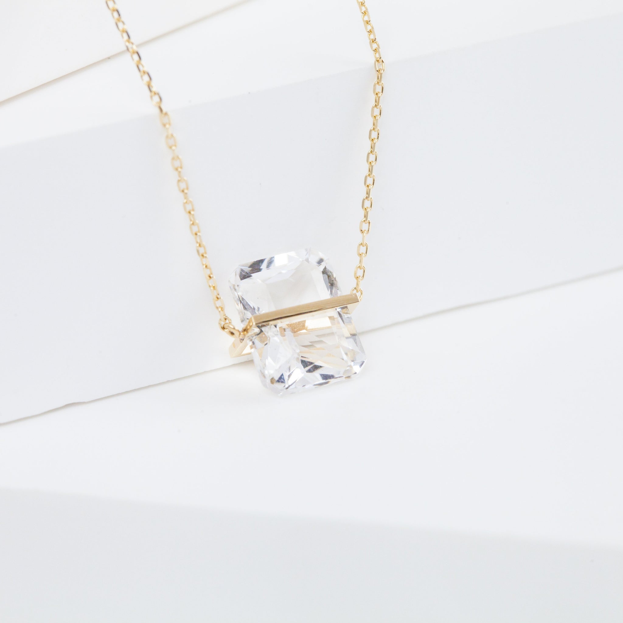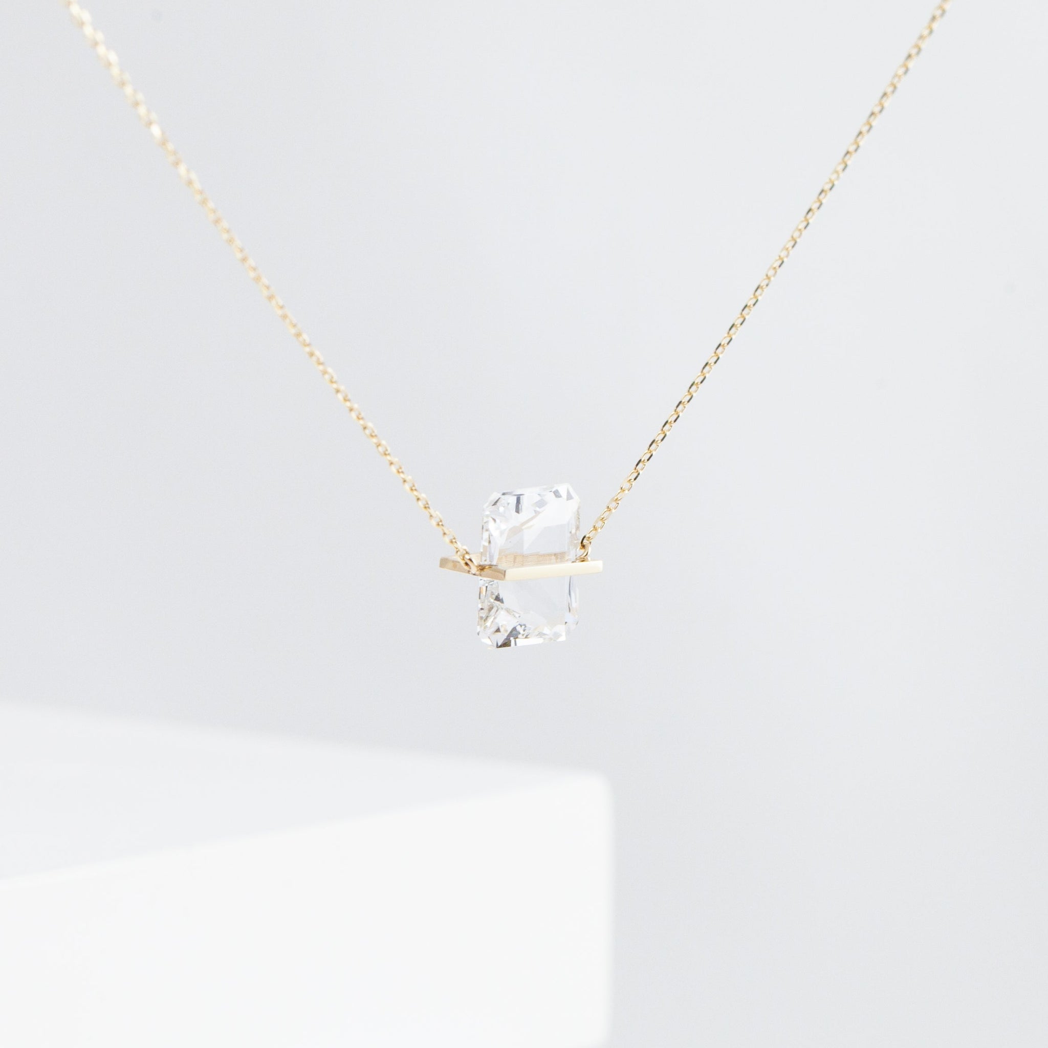 10k yellow gold goshenite necklace. Each stone in the band series is one-of-a-kind hand picked by Januka's designer. This necklace has a silicon adjuster at the back which allows you to shorten it to the length you desire to fit your look of the day.