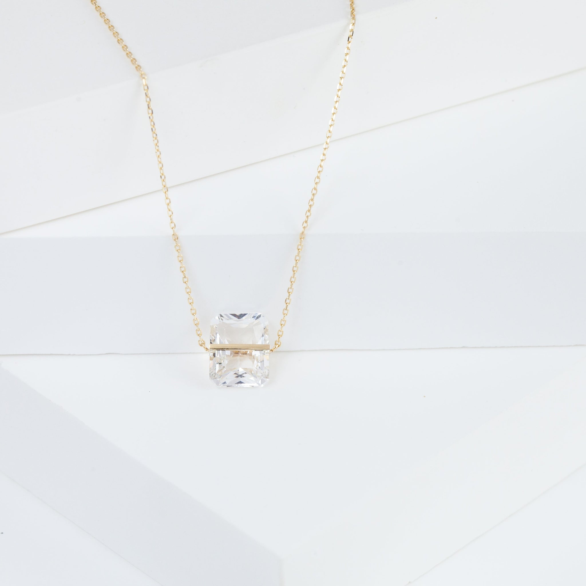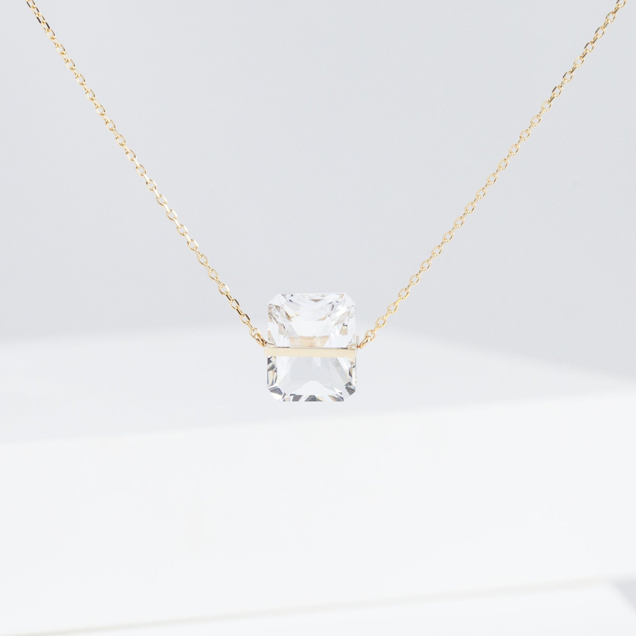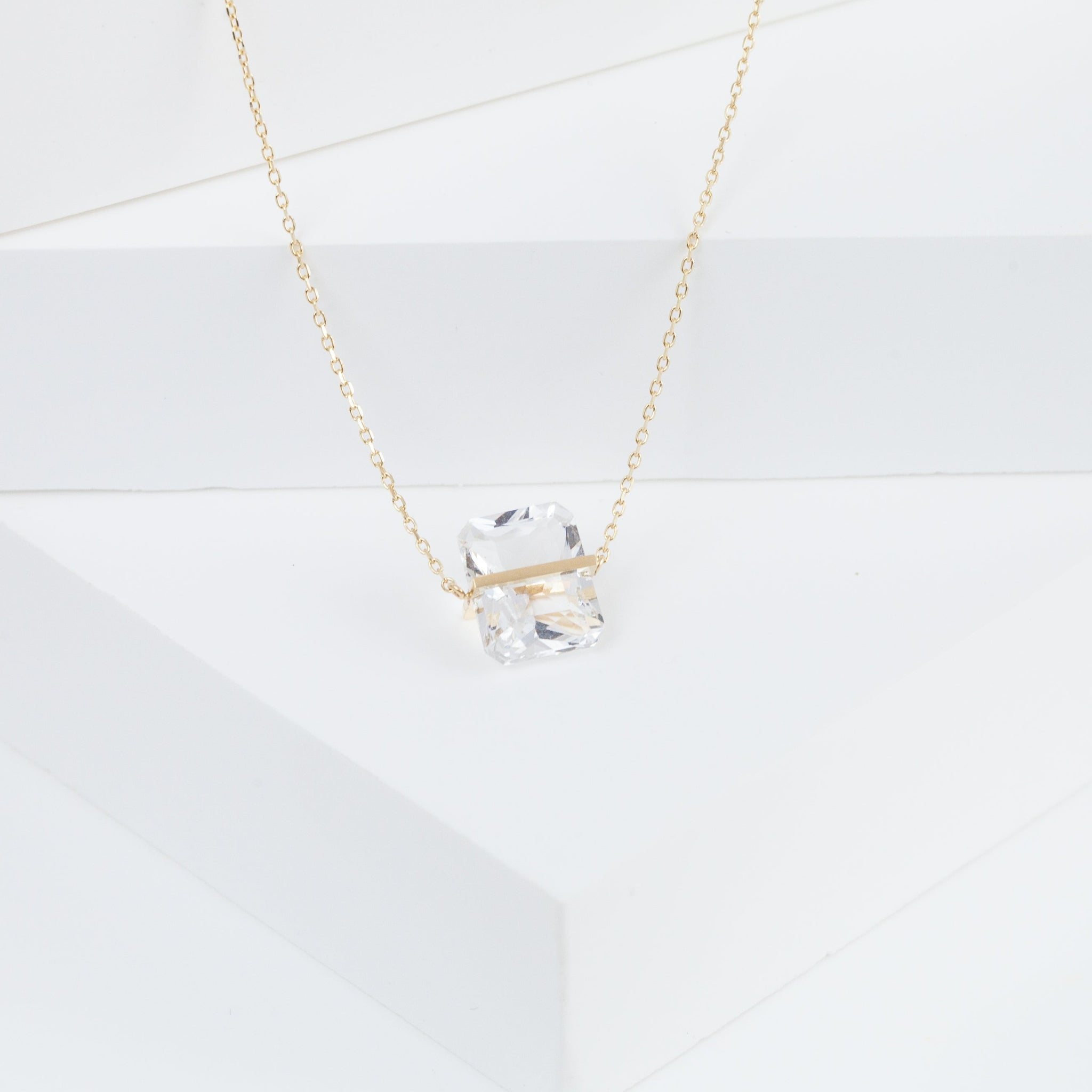 10k yellow gold goshenite necklace. Each stone in the band series is one-of-a-kind hand picked by Januka's designer. This necklace has a silicon adjuster at the back which allows you to shorten it to the length you desire to fit your look of the day.