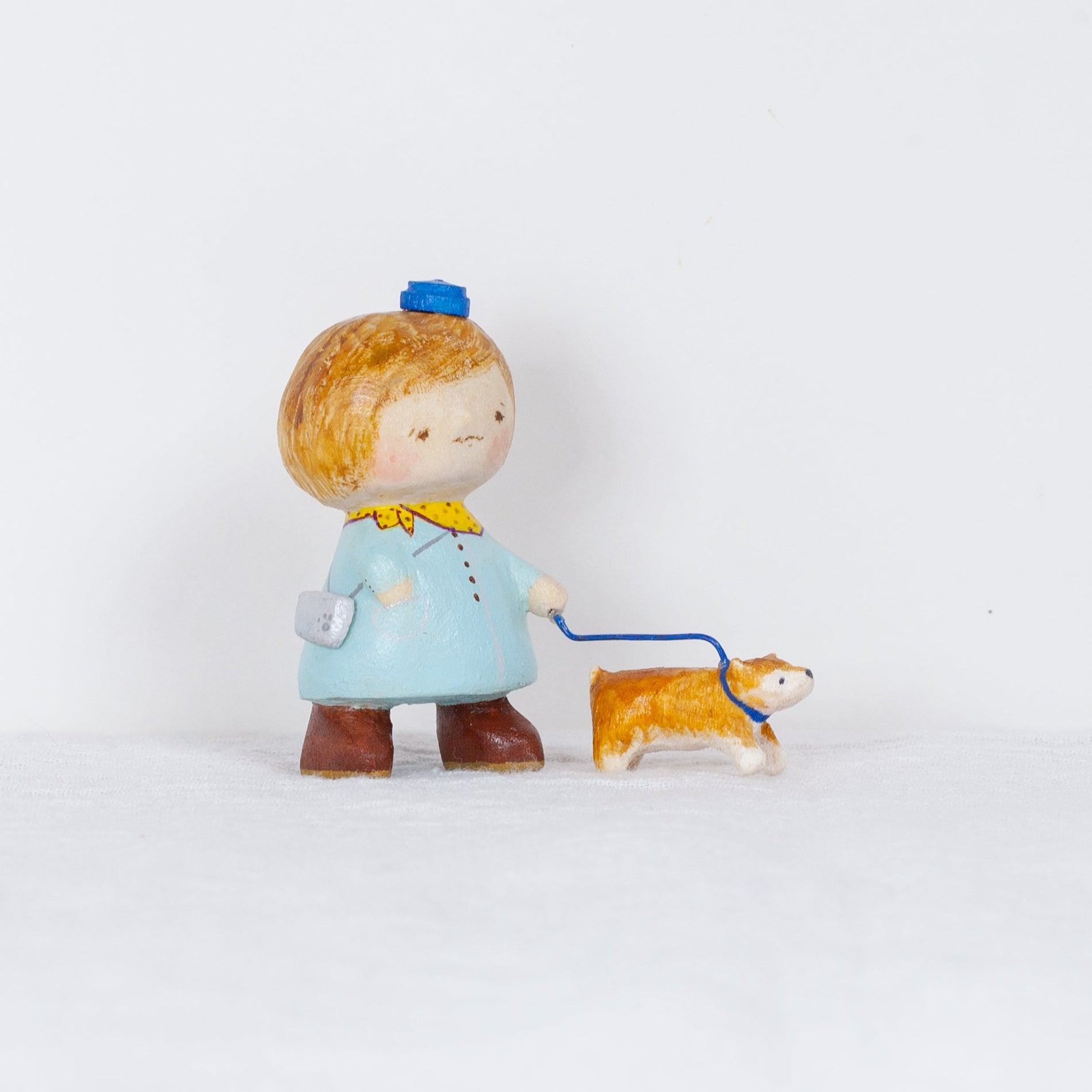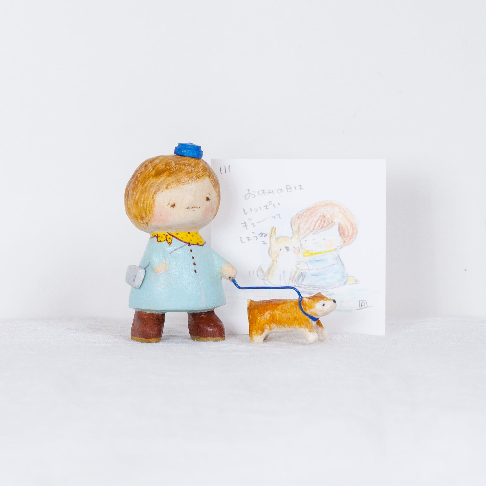 Akaiboushinoki’s carvings often feature tiny characters who always look just a little bit concerned. Each one is hand carved, hand painted, and completely one-of-a-kind. But it is not just the carvings that make Akaiboushinoki’s work special. The playful titles and little after stories, illustrated scenes that come with each piece, feel like quiet whispers from the figurines themselves and have become a signature part of Akaiboushinoki’s world.